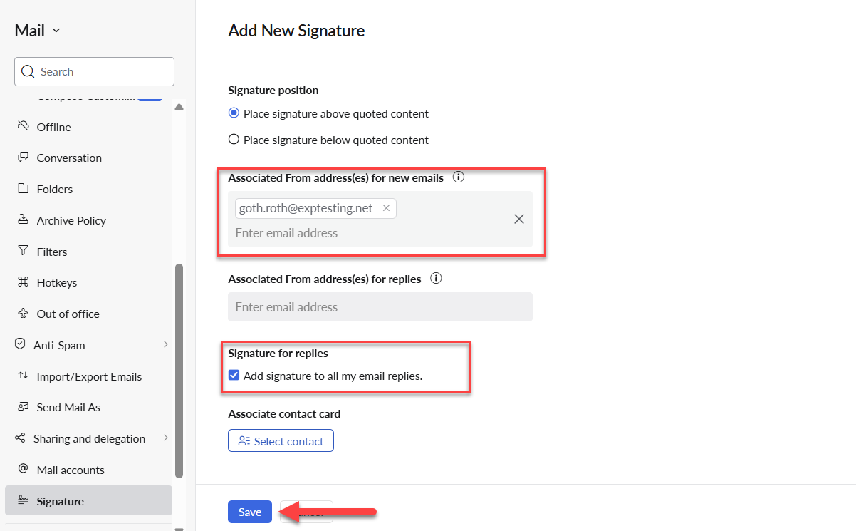 Once you have created and editing your signature as needed scroll down and you should see your eXp email address already listed in the field for "Associated From address(es) for new emails". If you don't see if there you'll want to enter it in.