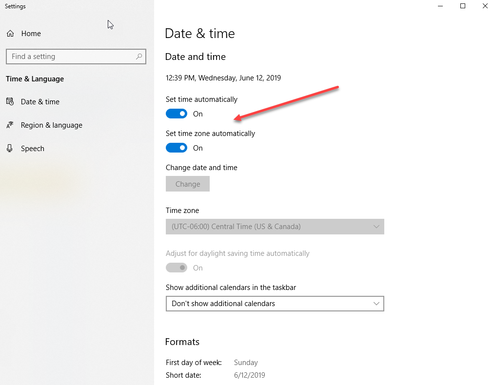Passo 2. Se vir um erro JWT, certifique-se de que as suas Definições de Data e Hora estão definidas como automáticas.