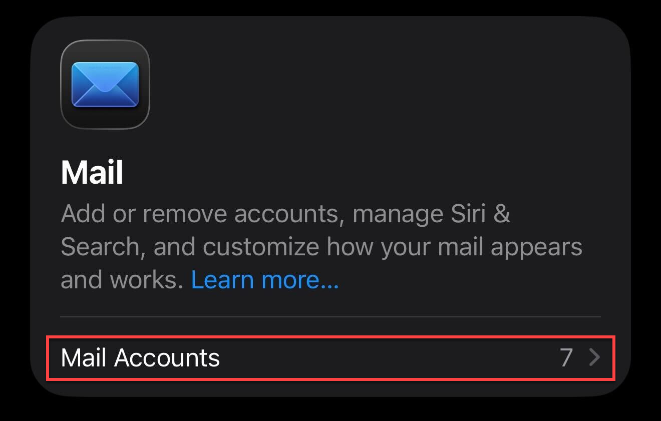 2. Once in the settings menu you'll want to select the Mail app to access the Mail settings.