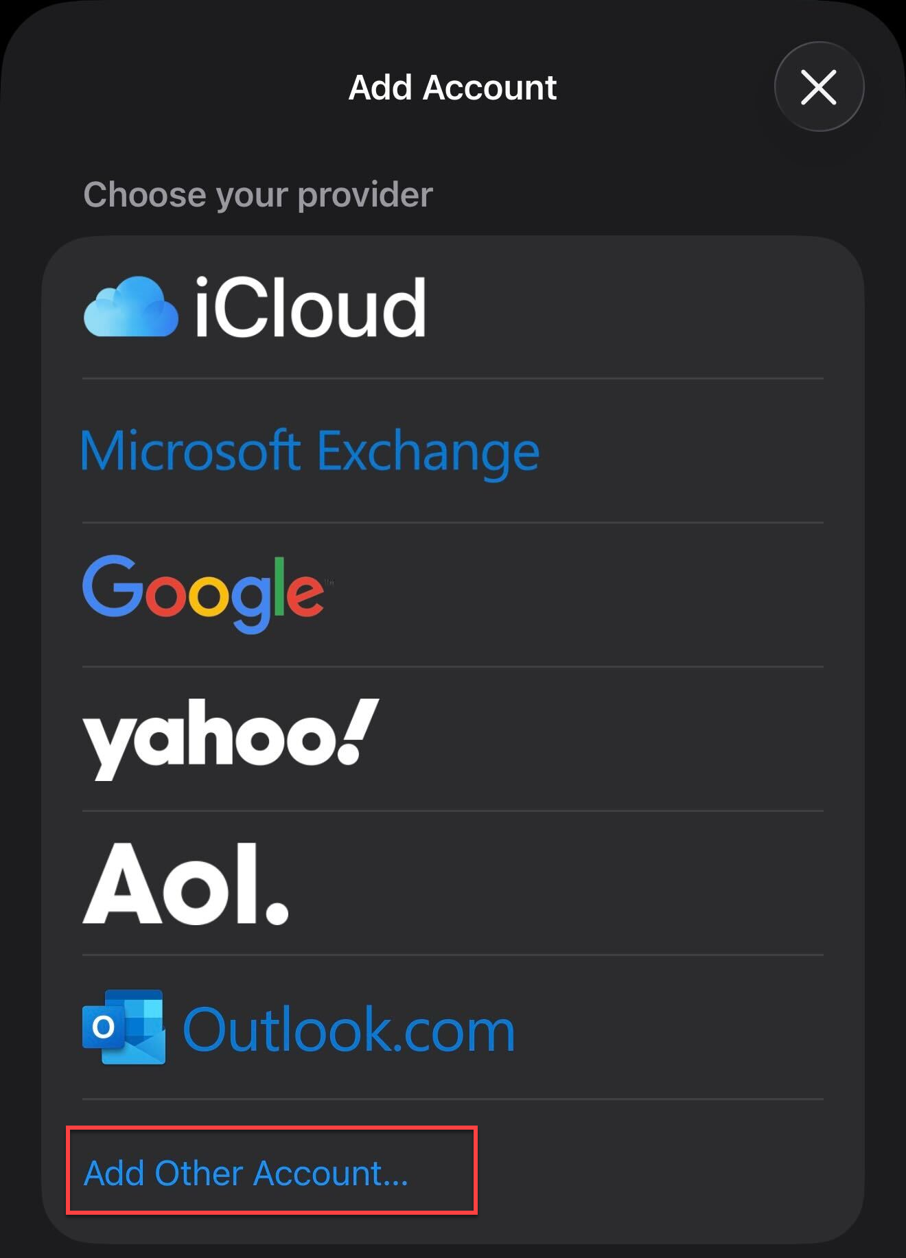 5. After entering your email address, you'll be required to choose your email provider. Here you can select Add Other Account as shown in image 5a followed by Mail Account as displayed in image 5b.