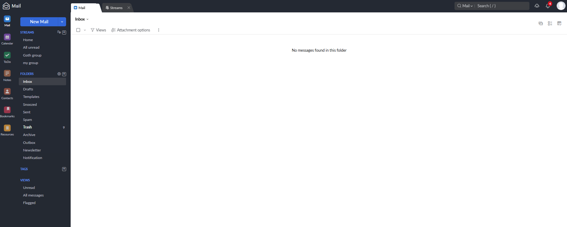 Once you've clicked on the Zoho Mail tile you'll be taken directly to the inbox for your eXp mail. Here you'll have all the functionality of a normal inbox for sending and receiving email, a calendar, to-do list and more.