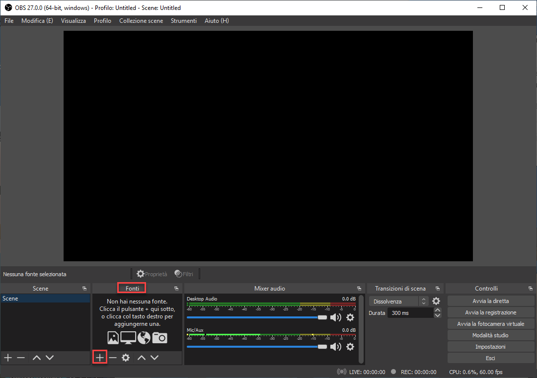 Ulteriori informazioni sull'avvio rapido sono disponibili su https://obsproject.com/wiki/OBS-Studio-Quickstart