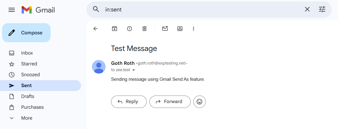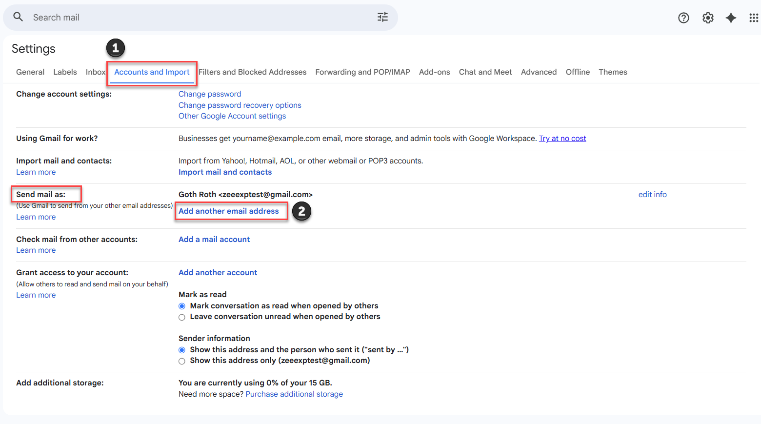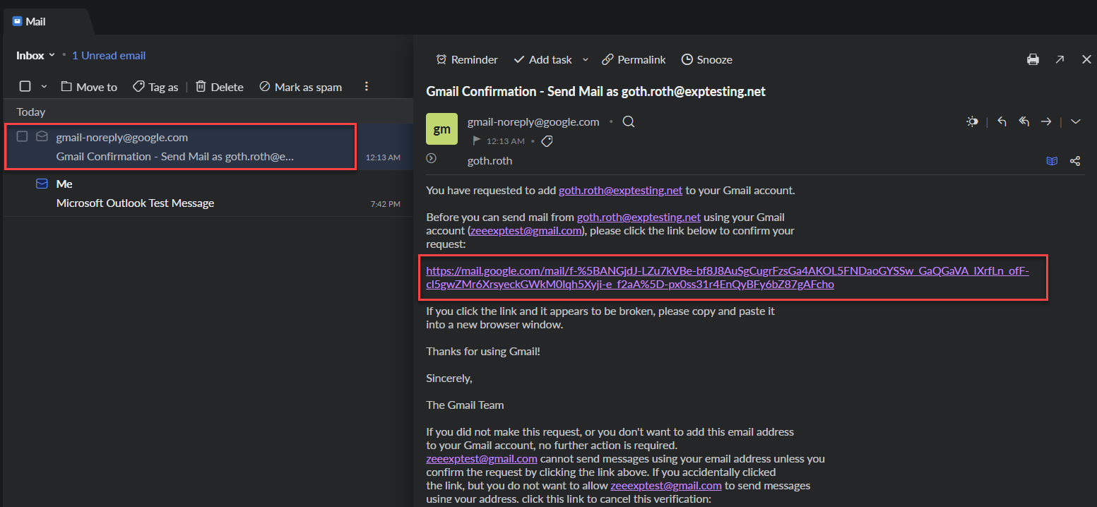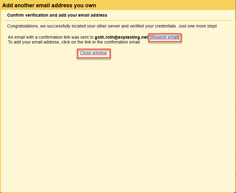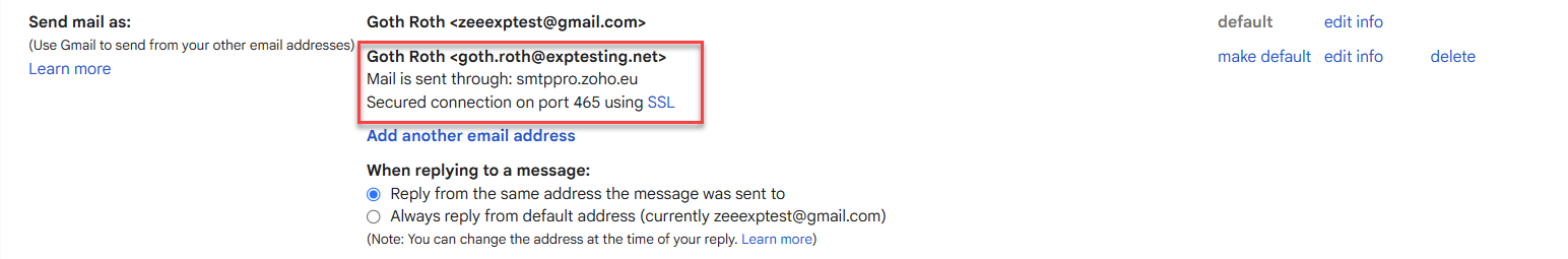 6. When you return to Gmail account, go to settings and verify that you now see your exp email address listed in the 'Send mail as' section.