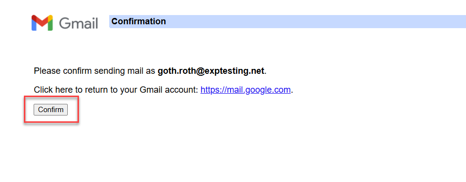 5. Google will require you to confirm and verify the setup by clicking a confirmation link sent to your eXp email inbox. Once you click the link in the email you'll be redirected to another website where you'll need to click the Confirm button as shown in the images below.
